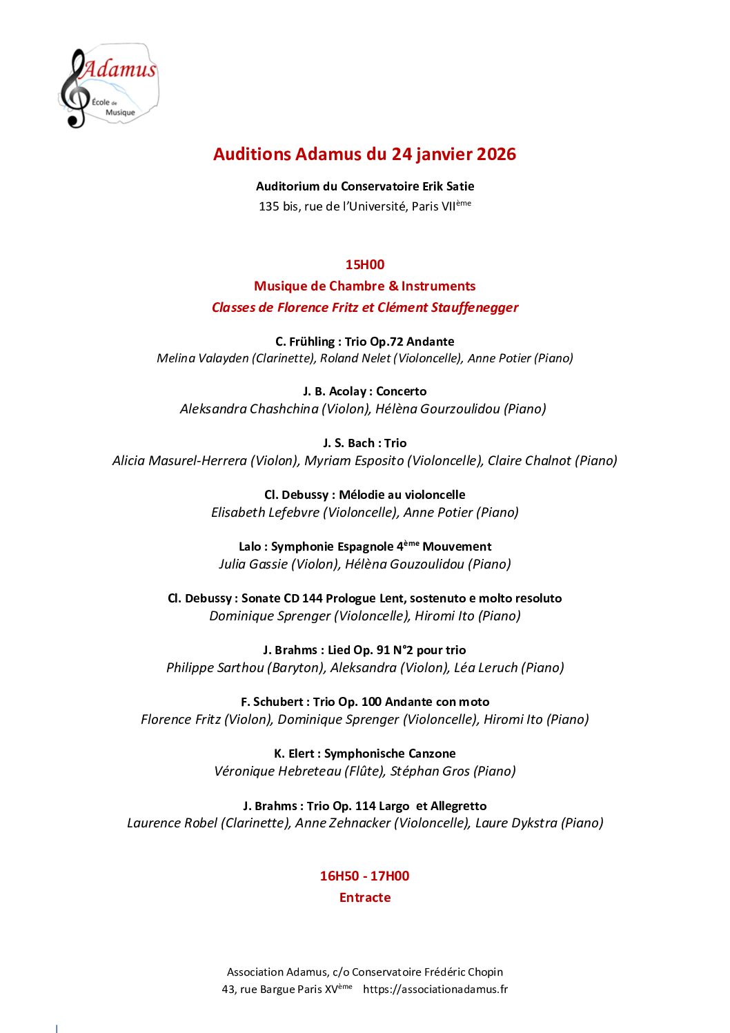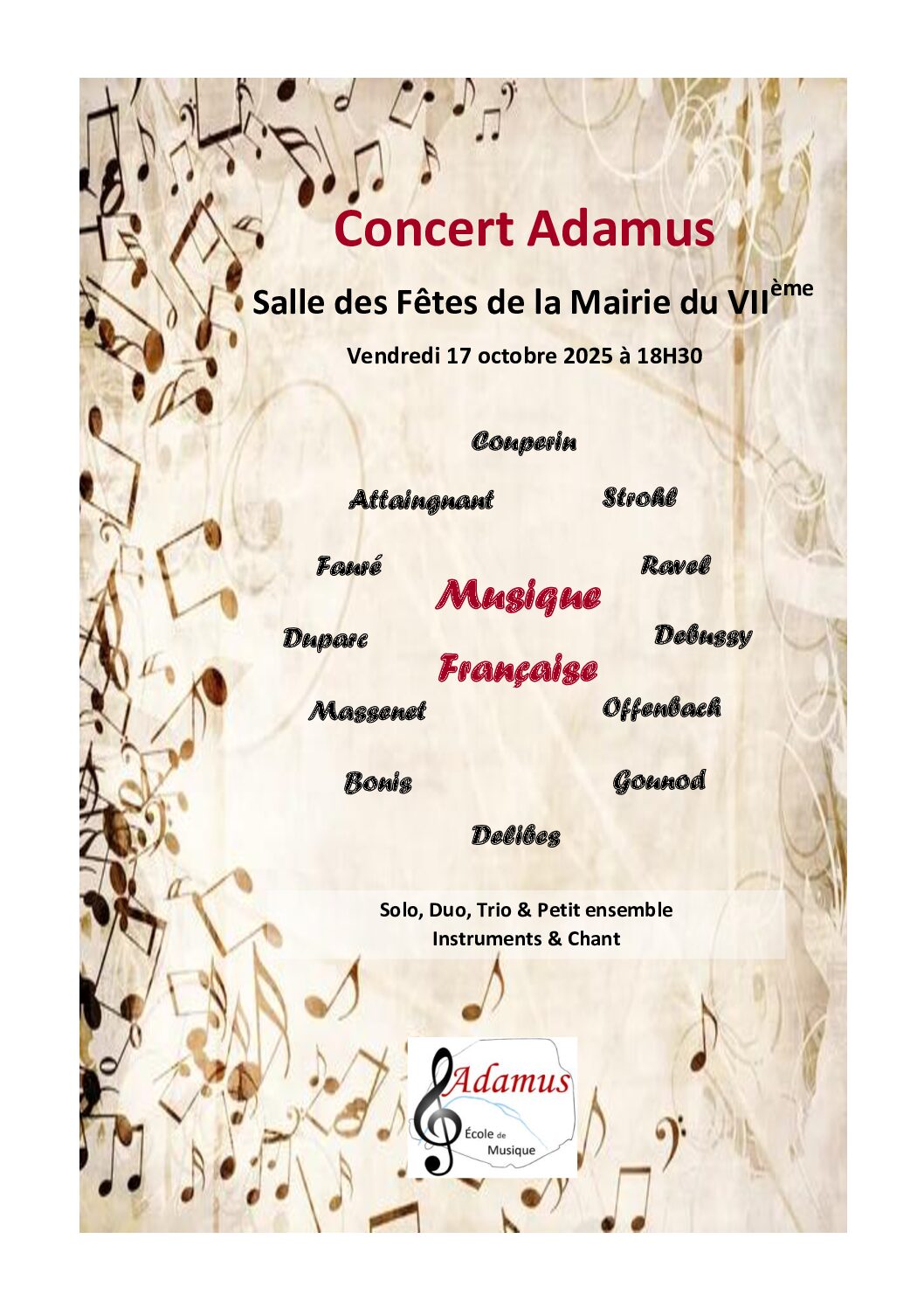 Concert Adamus du vendredi 17 octobre 2025 à la Salle de Fêtes de la Mairie du VIIème