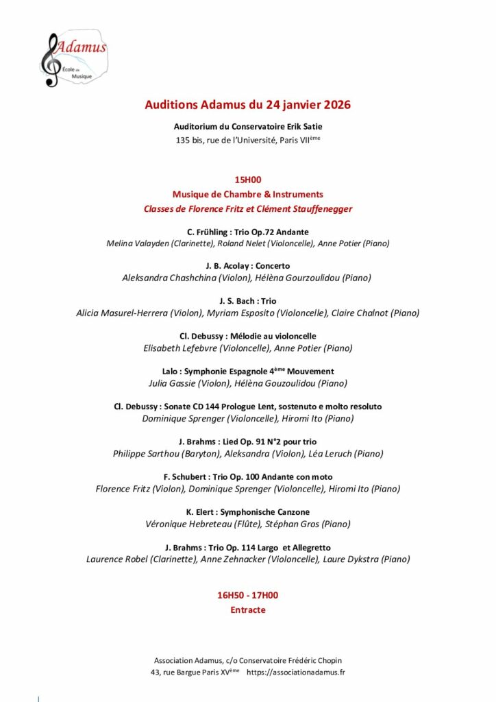 L’audition des élèves instrumentistes a eu lieu le 18 janvier 2025 dans l’auditorium du Conservatoire du 7ème, tout récemment refait